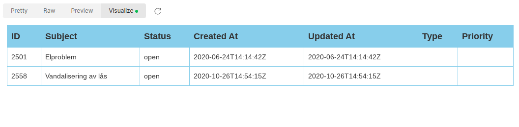 - Arbetsprocessen för att skapa en sida i wordpress, börjar med att ta reda på hur man vill presentera sin sida, vilka kolumner som ska visas.Här kan man titta i Zendesk agent workspace för att hitta parametrar som skall läggas in som parametrar i postman
